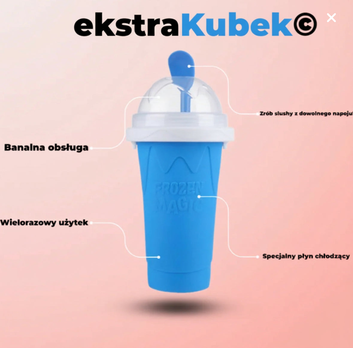 🧊 Ekstra Kubek z wbudowanym wkładem chłodzącym (pojemność 300 ml)🥤 Odkręcana zakrywka🥄 Słomko-łyżeczka